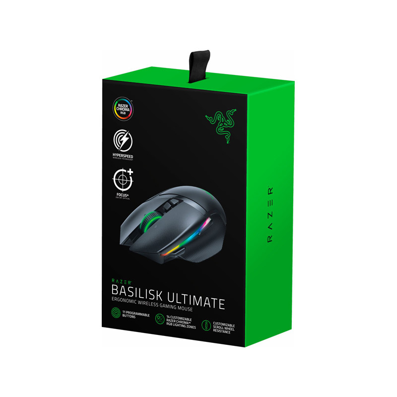 موس بی سیم Razer Basilisk Ultimate دارای حسگر اپتیکال بوده و 11 کلید قابل برنامه ریزی با حداکثر دقت 20000DPI، حداکثر سرعت 650IPS و حداکثر شتاب 50G برای آن در نظر گرفته شده که از طریق نرم افزار Razer Synapse 3 میتوان عملکرد هریک از کلیدها را تنظیم نمود. با توجه به قابلیت تنظیم پروفایلها و امکان ذخیره حداکثر 5 پروفایل در حافظه داخلی موس، میتوان متناسب با نوع بازی، تنظیمات مورد نظر خود را ذخیره کرد و در کمترین زمان آماده بازی شد.