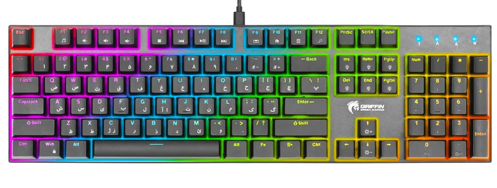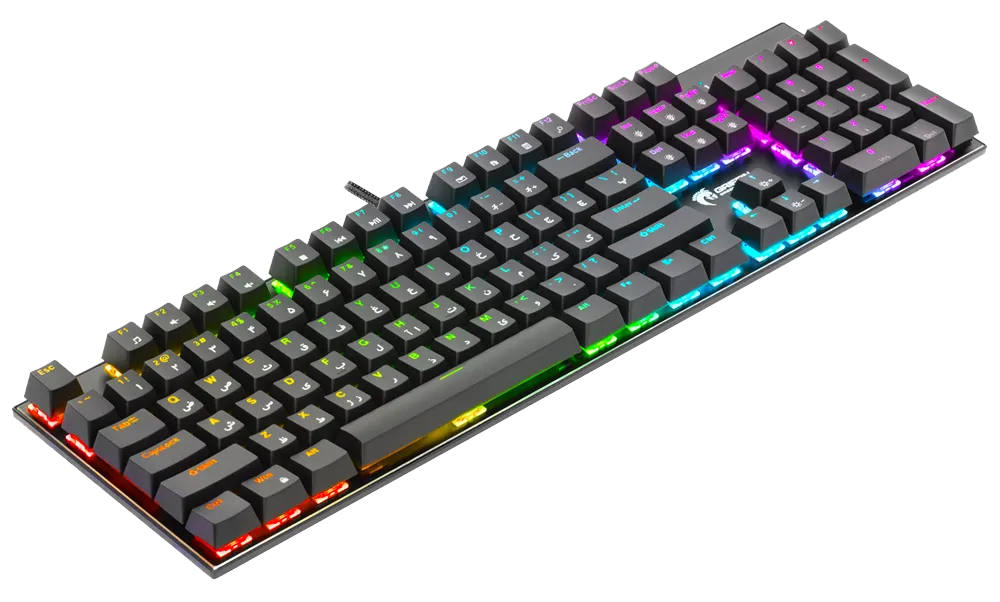 کلیدهای کیبورد GK802-RGB دارای نورپردازی RGB هستند تا حس و حال و لذت بازی کردن را دوچندان کنند. این نورپردازی دارای 18 جلوه مختلف با قابلیت کنترل سرعت و شدت نور است تا آن را طبق سلیقه خودتان شخصی سازی کنید. این کیبورد دارای 104 کلید شامل کلید ترکیبی FN است که عملکردهای مالتی مدیا را کنترل میکند. چاپ انگلیسی حروف بهصورت لیزری، و چاپ فارسی حروف بهصورت دیجیتالی انجام شده است.