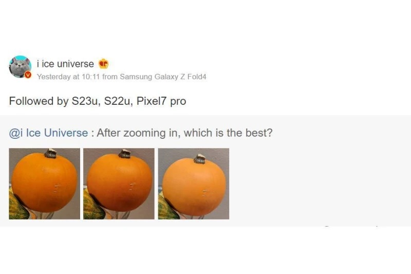 یکی از منابع معتبر دنیای فناوری به نام «Ice Universe»، در شبکه اجتماعی چینی ویبو سه عکس با دوربین گوشیهای پرچمدار منتشر کرده که در تمام آنها، سوژه یک کدو تنبل است.